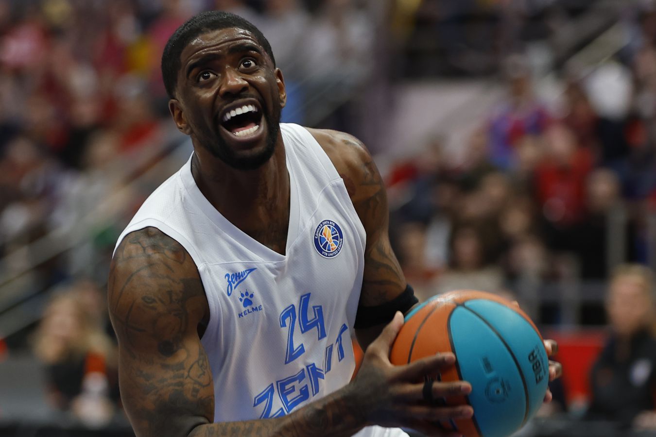 At the very beginning of the game, Zenit’s head coach Javier Pascual made a substitution, sending American forward Dwayne Bacon to the bench after he was cut above his eyebrow. As he left the court, the American reacted angrily, kicking and throwing a chair.