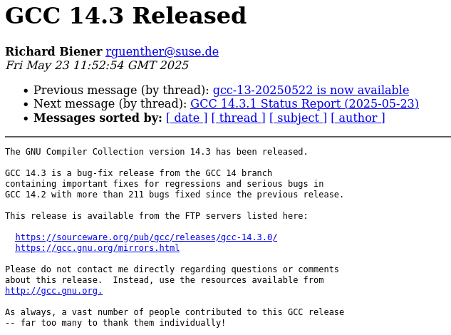 Release of GCC 14.3: Key Improvements and Bug Fixes in the Free Compiler Collection