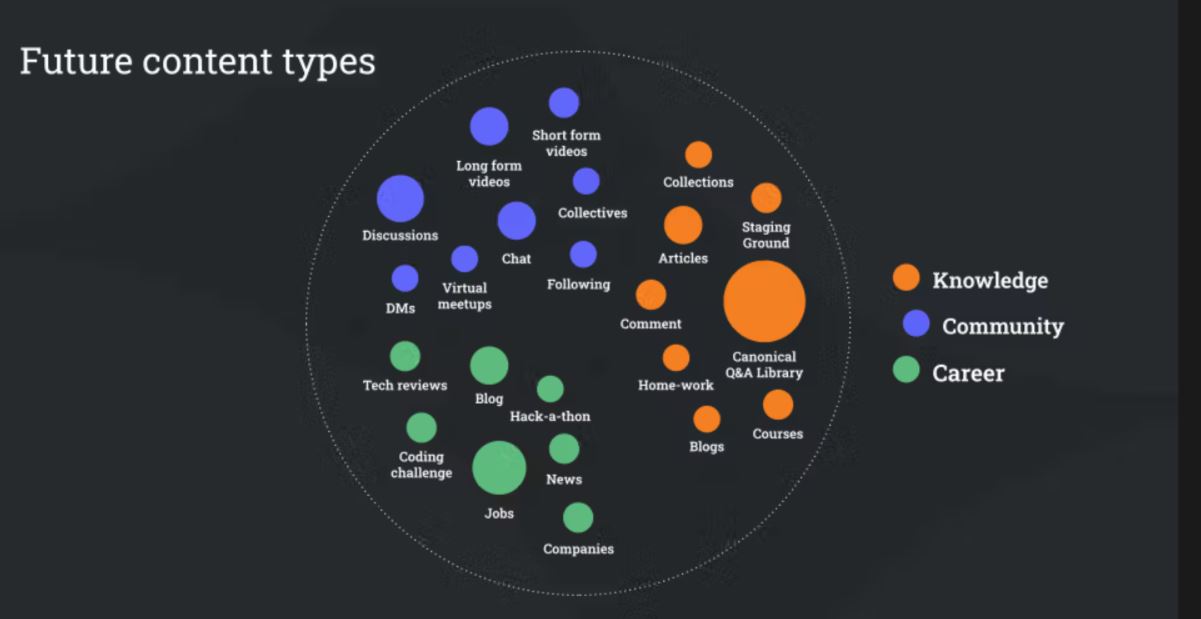 In March, Stack Overflow announced that they are considering initial ideas, including expert responses, discussions, more flexible Stack Exchange policies, and more. They are also exploring experimental formats, such as coding challenges.