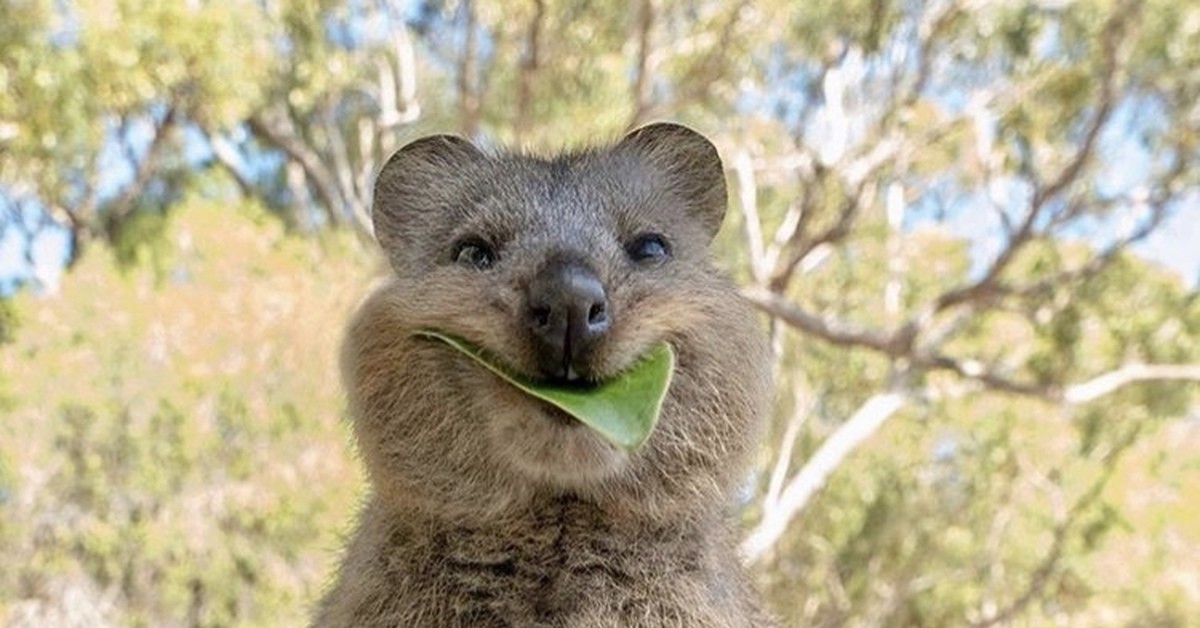 Квокка, также известная как короткохвостый кенгуру, напоминает кенгуру или валлаби, однако отличается короче хвостом, который не служит опорой. По размерам это животное сравнимо с большой домашней кошкой или средней собакой: длина тела около 50 см, хвост примерно 30 см, а вес варьируется от 2,5 до 5 кг. Квокки являются травоядными и ведут в основном ночной образ жизни. Они предпочитают сухие травянистые места с густым кустарником, но в засушливые периоды могут встречаться в болотистых местностях. Эти животные отличаются любопытством и не боятся людей, часто allowing to approach closely. Их особенностью является так называемая «улыбка», которая появляется на морде, когда они расслабляют жевательные мышцы, прекращая жевать.