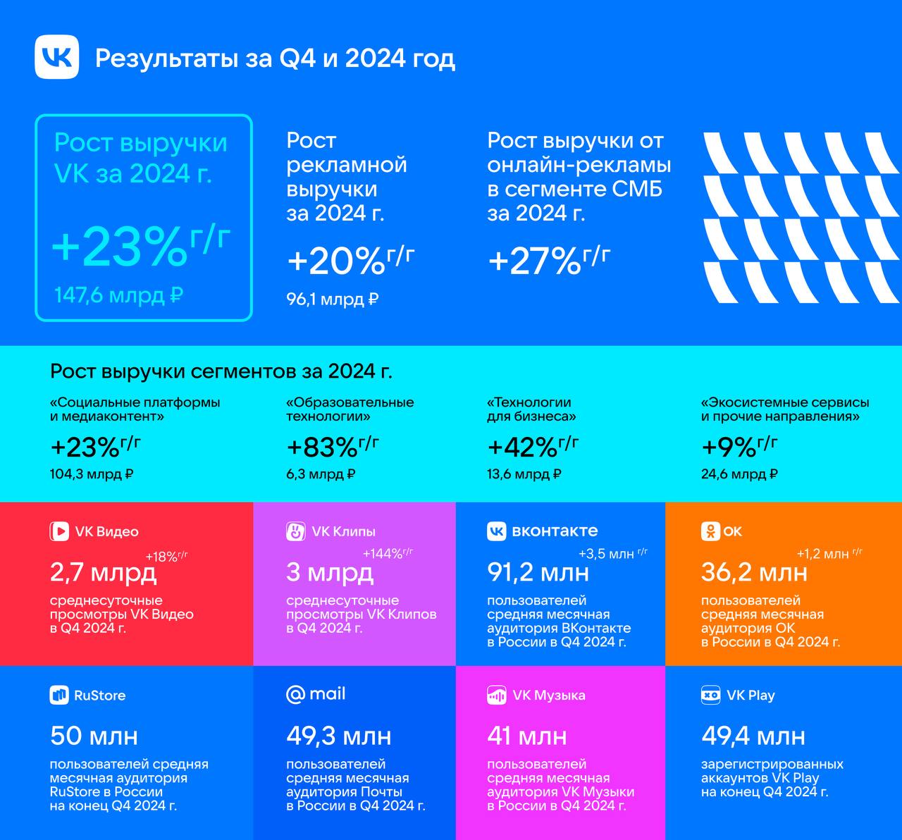Meanwhile, income from video advertising on VK platforms doubled, reaching 3.9 billion rubles.